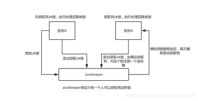 这个其实是 zookeeper 很经典的一个用法,简单来说,就好比,你 A 系统发送个请求到 mq,然后 B 系统消息消费之后处理了。那 A 系统如何知道 B 系统的处理结果?用 zookeeper 就可以实现分布式系统之间的协调工作。A 系统发送请求之后可以在 zookeeper 上对某个节点的值注册个监听器,一旦 B 系统处理完了就修改 zookeeper 那个节点的值,A 系统立马就可以收到通知,完美解决。