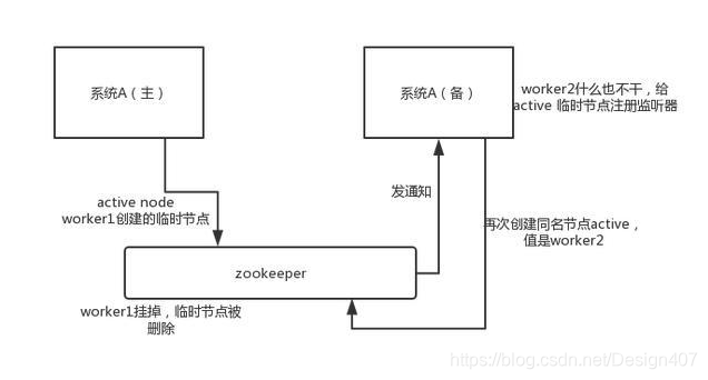 这个应该是很常见的,比如 hadoop、hdfs、yarn 等很多大数据系统,都选择基于 zookeeper 来开发 HA 高可用机制,就是一个重要进程一般会做主备两个,主进程挂了立马通过 zookeeper 感知到切换到备用进程。
